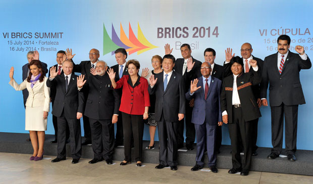 Presidents of the five BRICS nations, Brazil, Russia, India, China, and South Africa